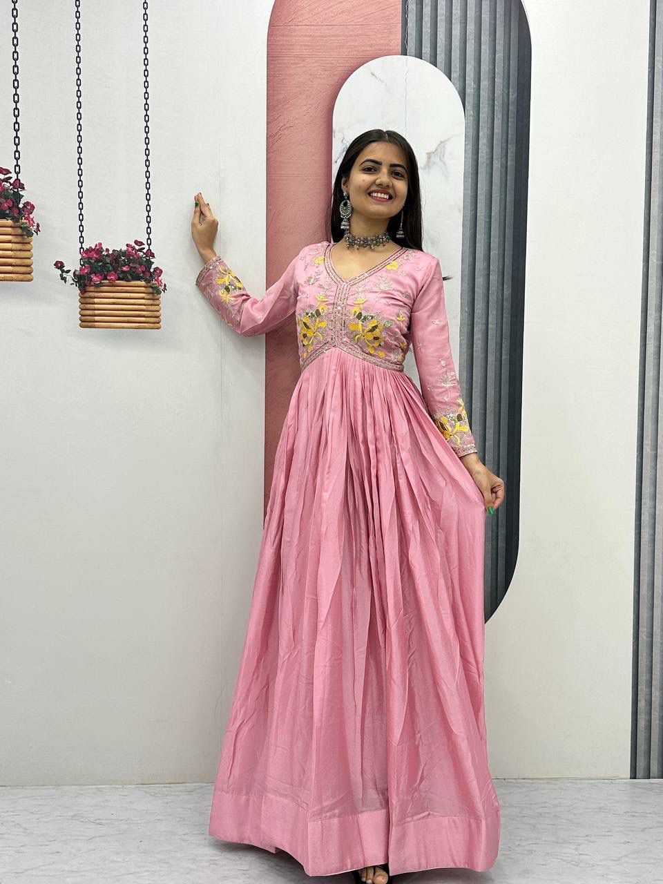 Gown Fabric:- Chinon Work:- Heavy Embroidery Thread Work Inner:- Micro Cotton Size:- Free Size Semi Stitched (Fully Stitched) |