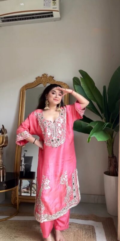 Top Fabric: Roman Silk Lining: Soft Micro Cotton Work: Thread With 9mm Sequence With Mirror Sizes: Free Size Semi Stitched Height : 47 Inch . Sharara Fabric : Roman Silk Fit : Fully Stitched Up To Size 44 With Stretchable Elastic Waist Length: 38 Inches |