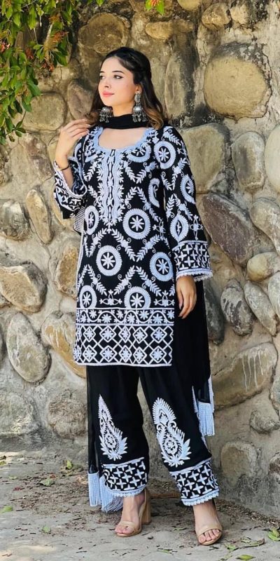Perfect Black Color Foix Georgette Chine Stitched Salwar Suit