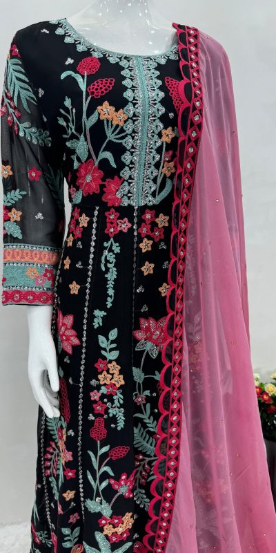 Perfect Blue Color Georgette Embroidered Sequence Salwar Suit