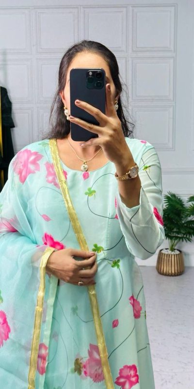 Perfect Blue Color Satin Georgette With Digital Print Anarkali Suit