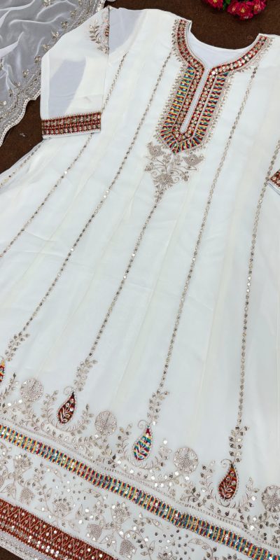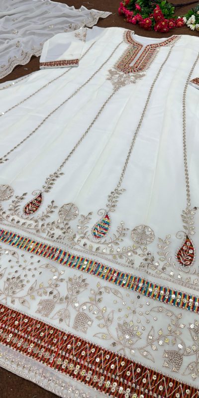 Perfect White Color Georgette Embroidered Sequence Salwar Suit