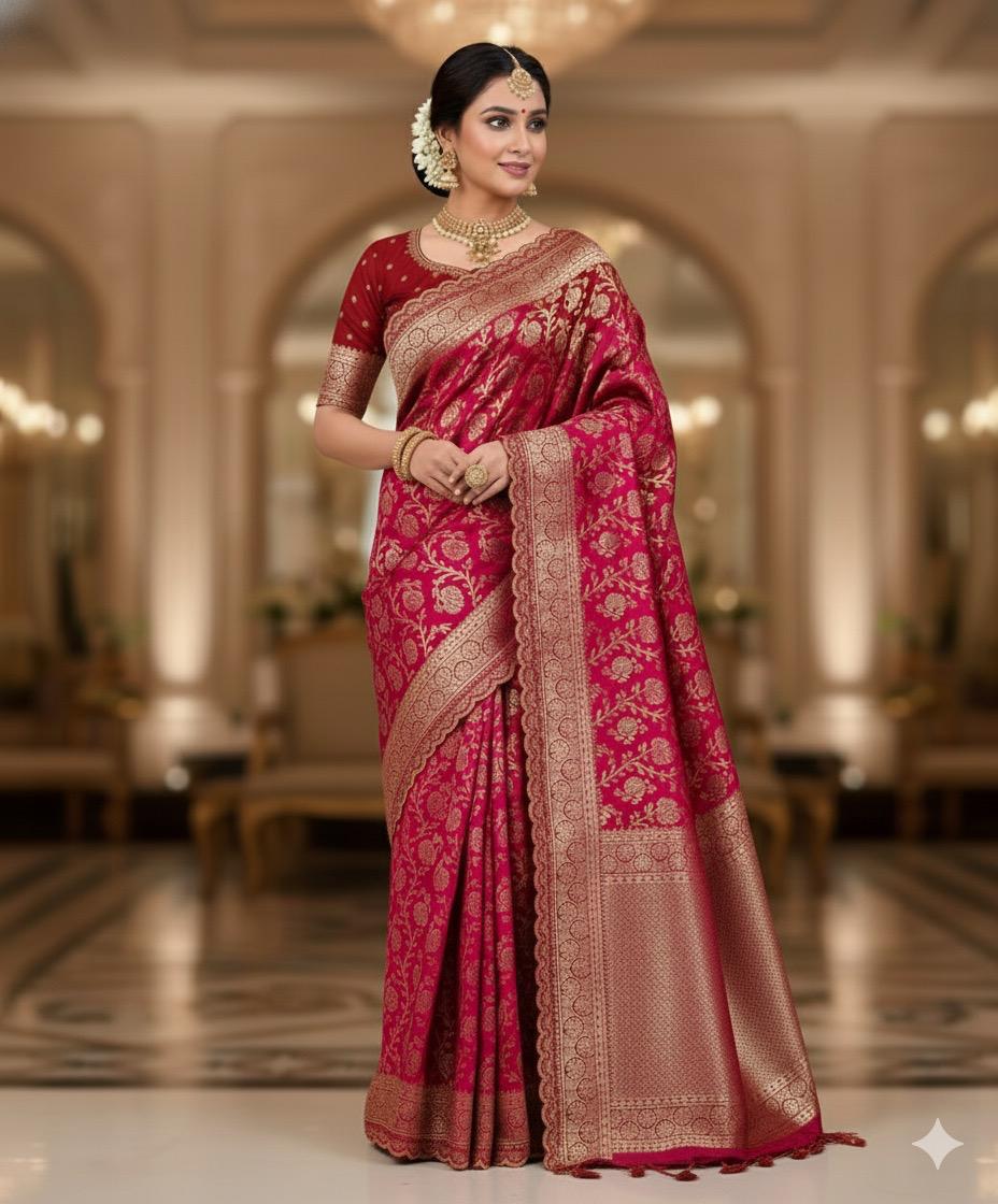 3. I was amazed by the quality of this saree. The zari work shines beautifully under light, and the fabric is light enough to wear for hours without feeling tired or uncomfortable.