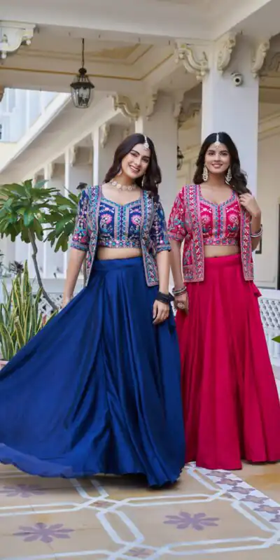 Choli Fabric:- pure Vichitra Work:- Heavy embroidery Thread Work Inner:- Micro Cotton Size:- Free Size Semi Stitched Fully Stitched Lehenga Fabric:- pure Vichitra Inner:- Micro Cotton Flair :- 8.50 meter size:-44 (Attached Canvas and Can Can) Koti Fabric:- pure Vichitra Inner:- Micro Cotton Work:- Embroidery Thread Work Size:- 44 |