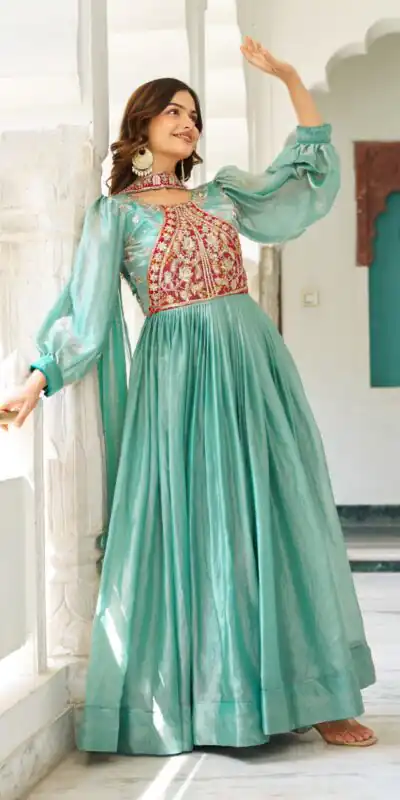 Gown Fabric:- Fendy silk Work:-*Heavy sequence & Thread Embroidery Work Inner:- Micro Cotton Flair:-3.50 mtr Size:- freeze Size Semi Stitched (Fully Stitched)Dupatta *Fabric:-*Fendy silk Work:- Heavy sequence & Thread Embroidery Work Size:- 2.30 Meter |