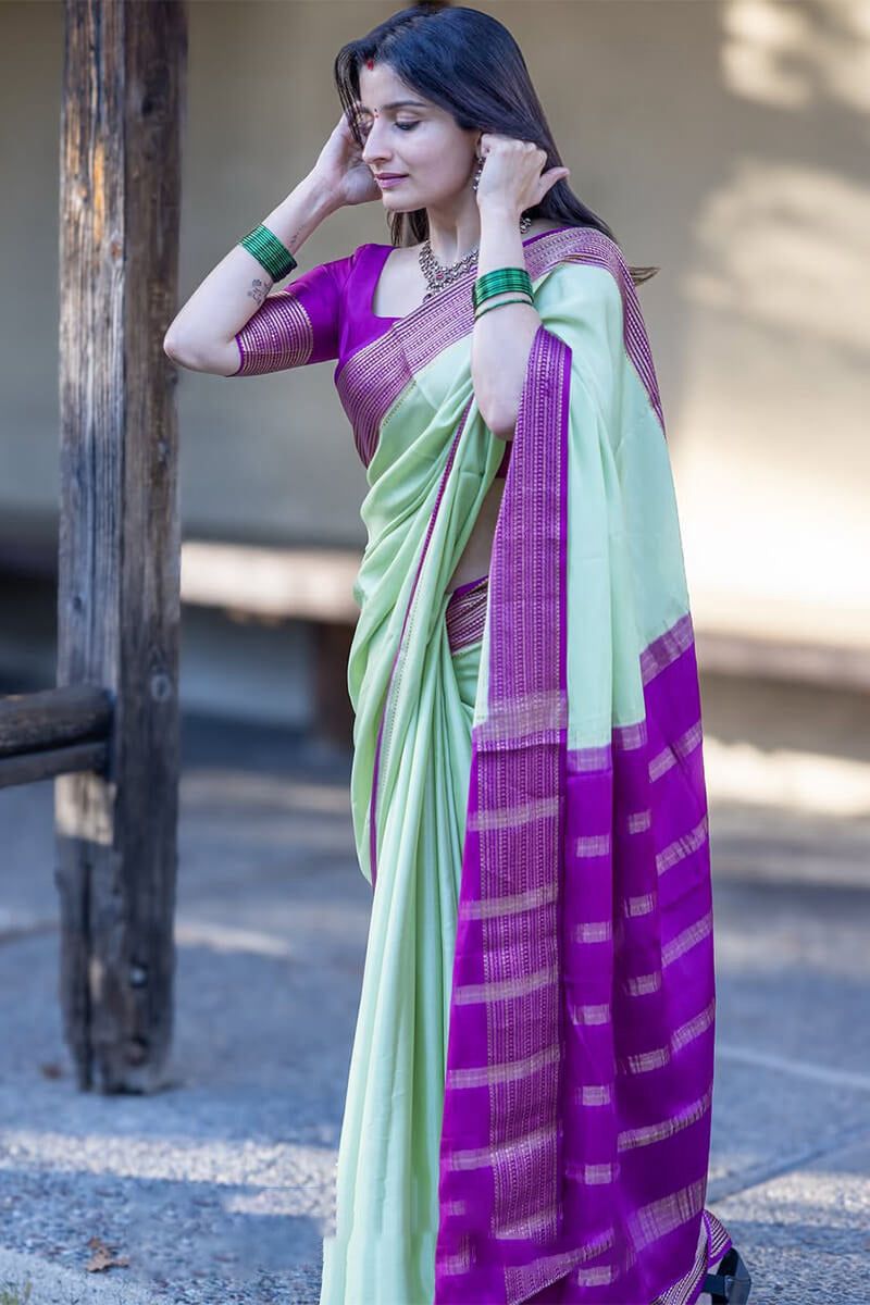 Unique colors and exceptional detailing make this saree a standout choice. It feels incredibly lightweight and comfortable even when worn for several hours.