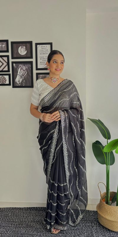 Pretty Black Color Soft Organza Zari With Sequence Saree