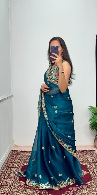 ST 472 Blue Color Burberry With Blooming Embroidery Saree Casual, Wedding, Party, Festive, Events Etc. Expected Delivery 4-6 Working Days @1999/-