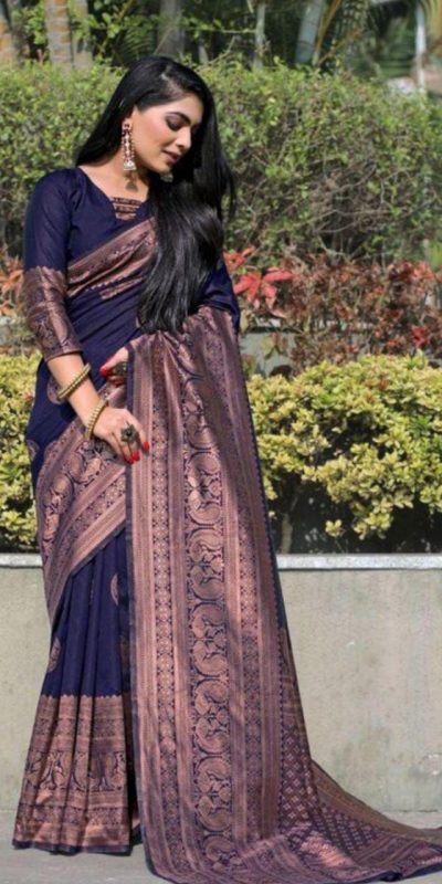 Pretty Navy Blue Color Soft Lichi Silk Jacquard All Over Saree