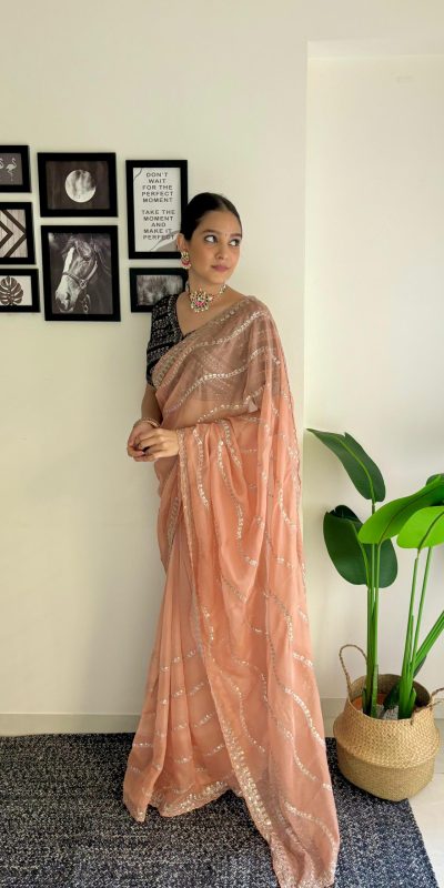 Pretty Peach Color Soft Organza Zari With Sequence Saree