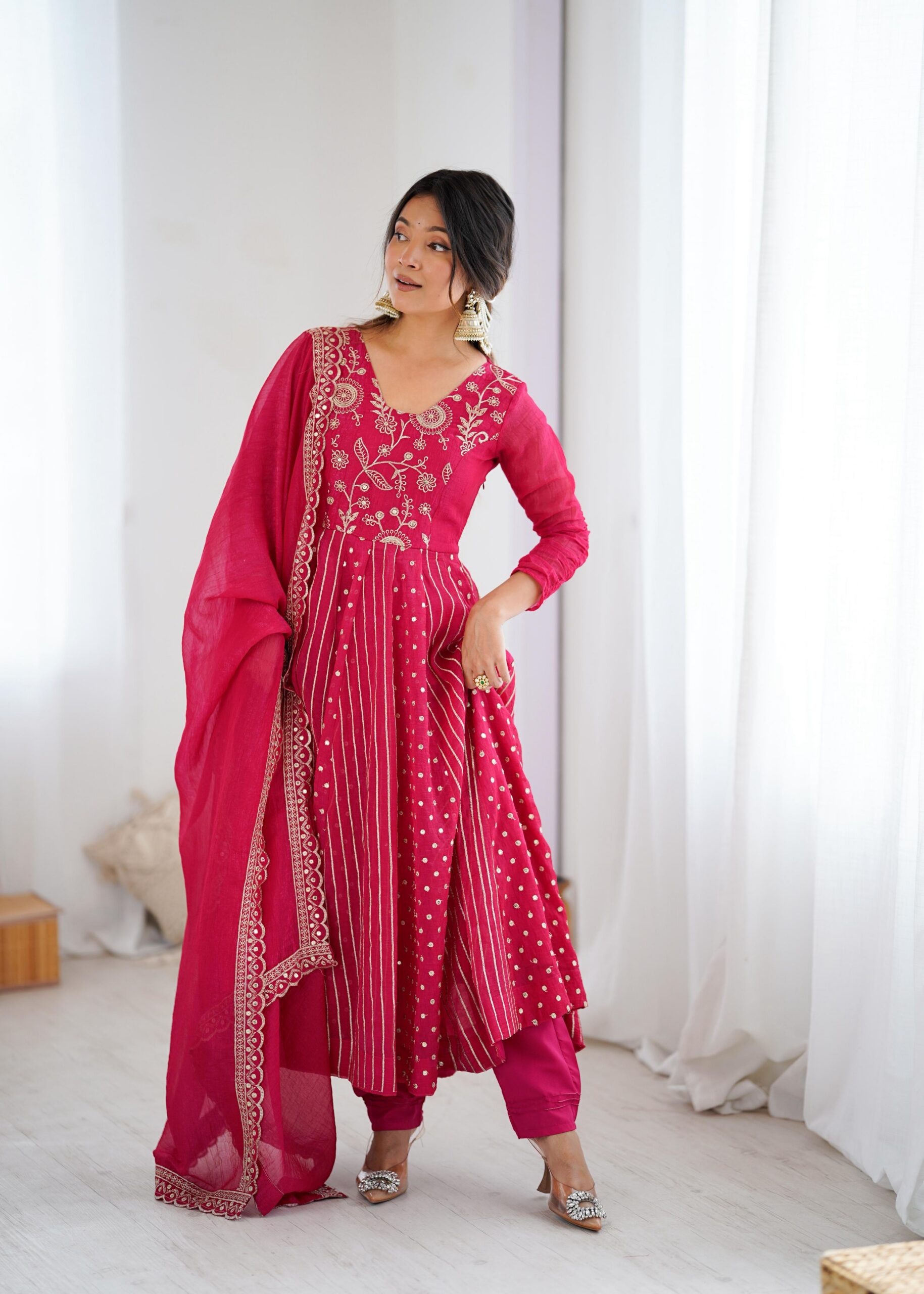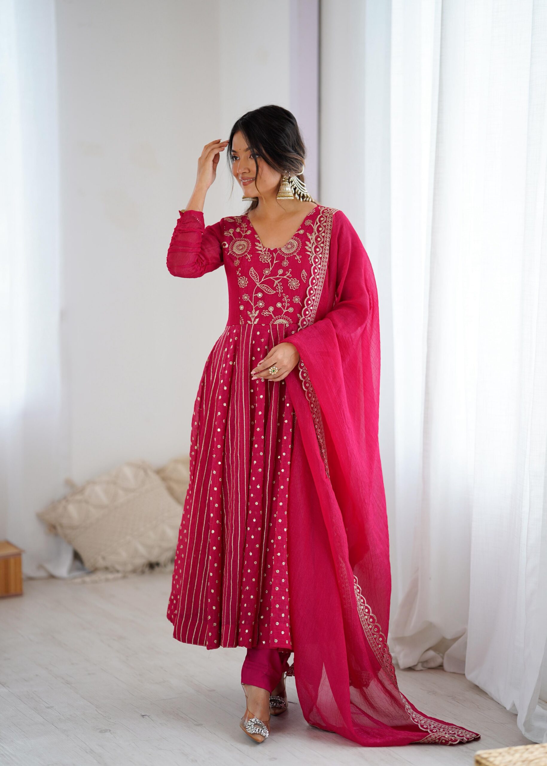 Fabric: Anarkali Gown With Crunchy Silk With Fully Flair