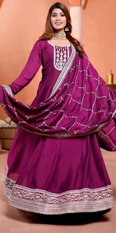 VLM 196 Purple Color Chinon Silk Embroidery Sequence Gown Casual, Wedding, Party, Festive, Events Etc. Expected Delivery 4-6 Working Days @1999/-