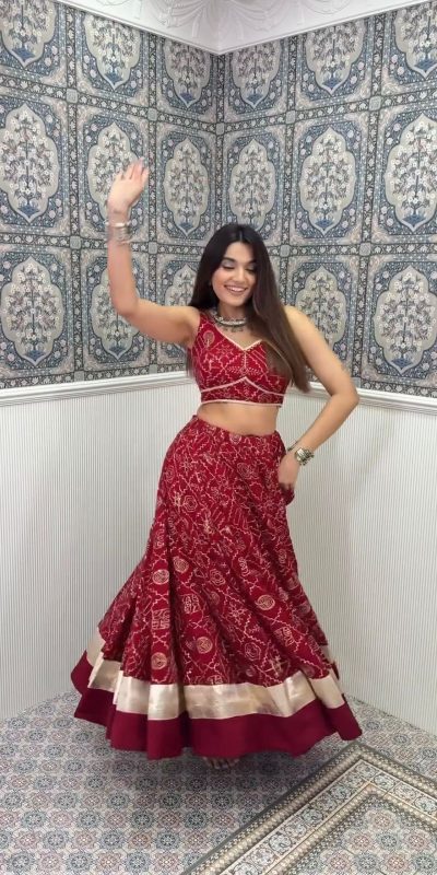 LG 613 Red Color Rayon Printed Silk Work Lehenga Choli Festive Party Wedding, Events etc. Delivery 4-6 Working Days @1999/-