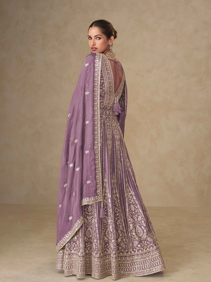 Purple Chinon Silk Embroider Work Salwar Suit