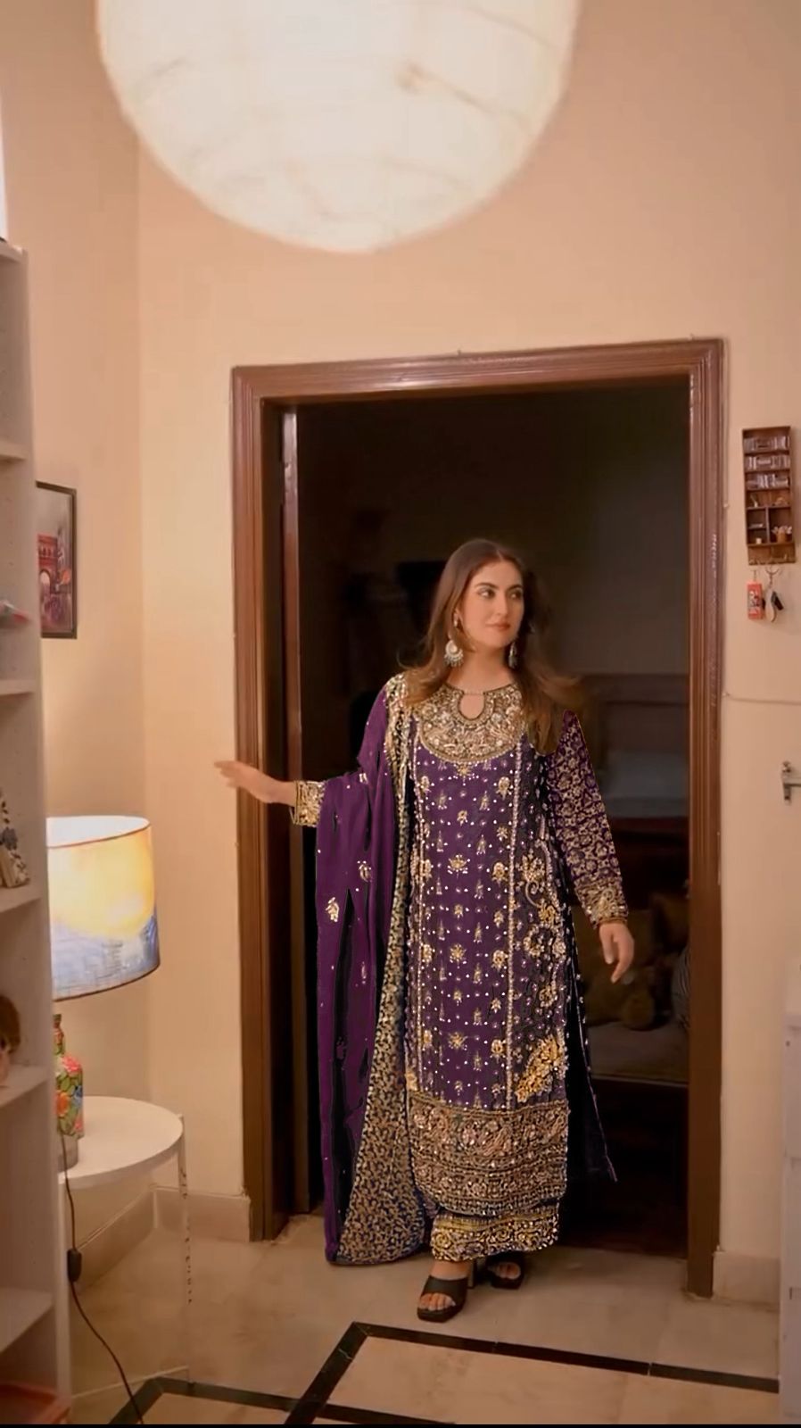 Purple Faux Georgette Embroidery Work Salwar Suit