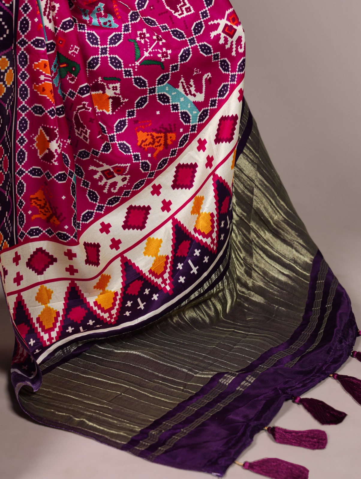 Saree work : Patola Print and Lagadi patta also comes with Tassels
