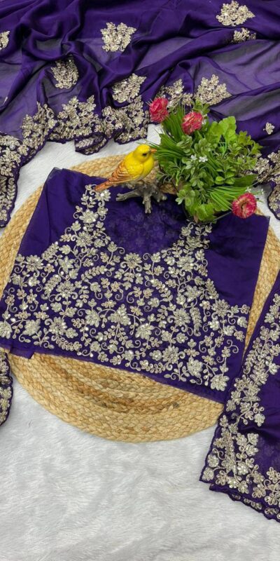 Purple Rangoli Silk Sequins Embroidery Work Saree