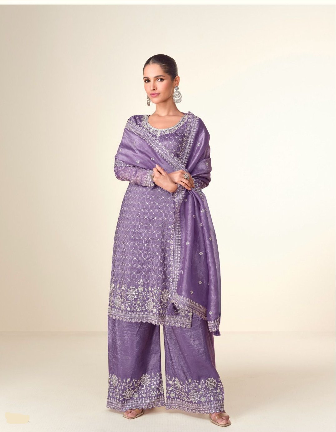 Fabric Details Top-premium Tissue Crush (Stitch )Top :- Heavy Chinon & Embroidery Multi Work Inner :- Santoon Size:-Free Size Semi Stitched Palazzo-premium Tissue Crush ( Stitch ) Inner:-Santoon Sleeves :- Heavy Chinon & Embroidery Multi Work Palazzo :- Heavy Chinon & Multi Work Palazzo Length :-44 Cut:-2.40 Mtr Full Stitched Type :- Semi Stitched ( Material ) Dupatta :-heavy Chinon+ Multi Work Dupatta- Premium Tissue Crush |