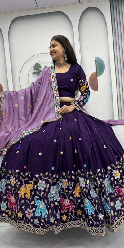 Purple Vichitra Silk Lace Border Work Lehenga Choli