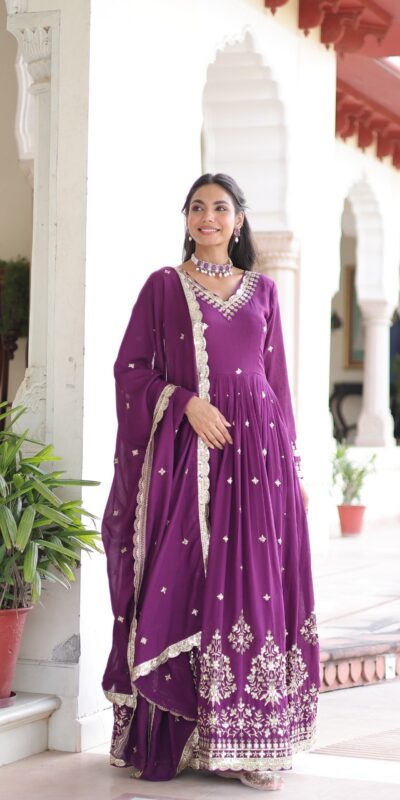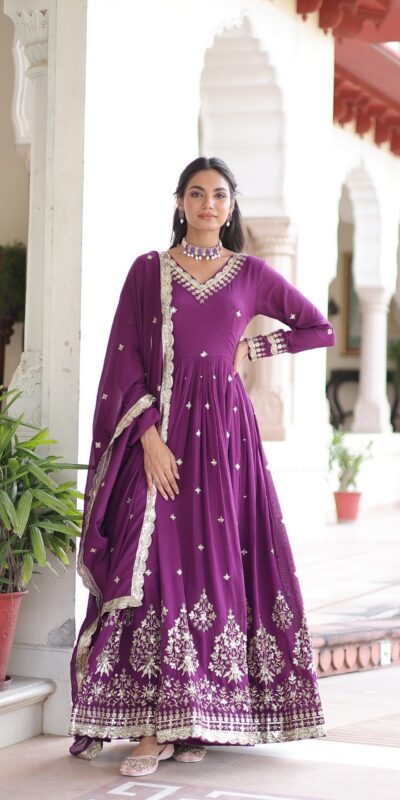 Purple Vichitra Silk Sequins Work Gown