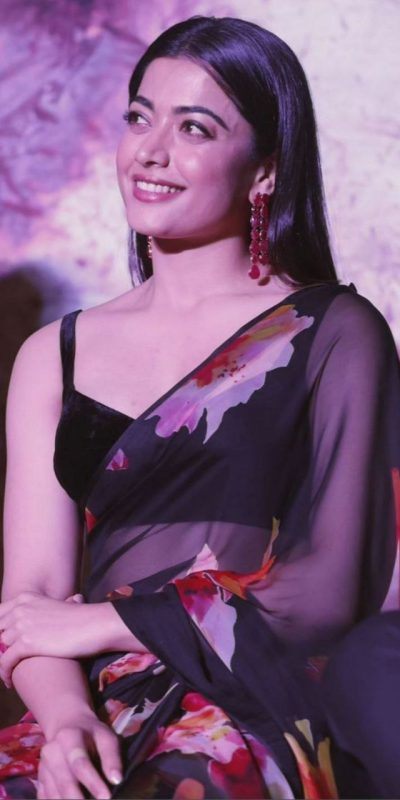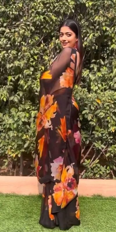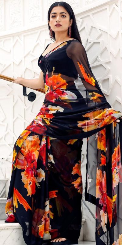 Rashmika Mandanna Black Color Georgette Digital Print Saree