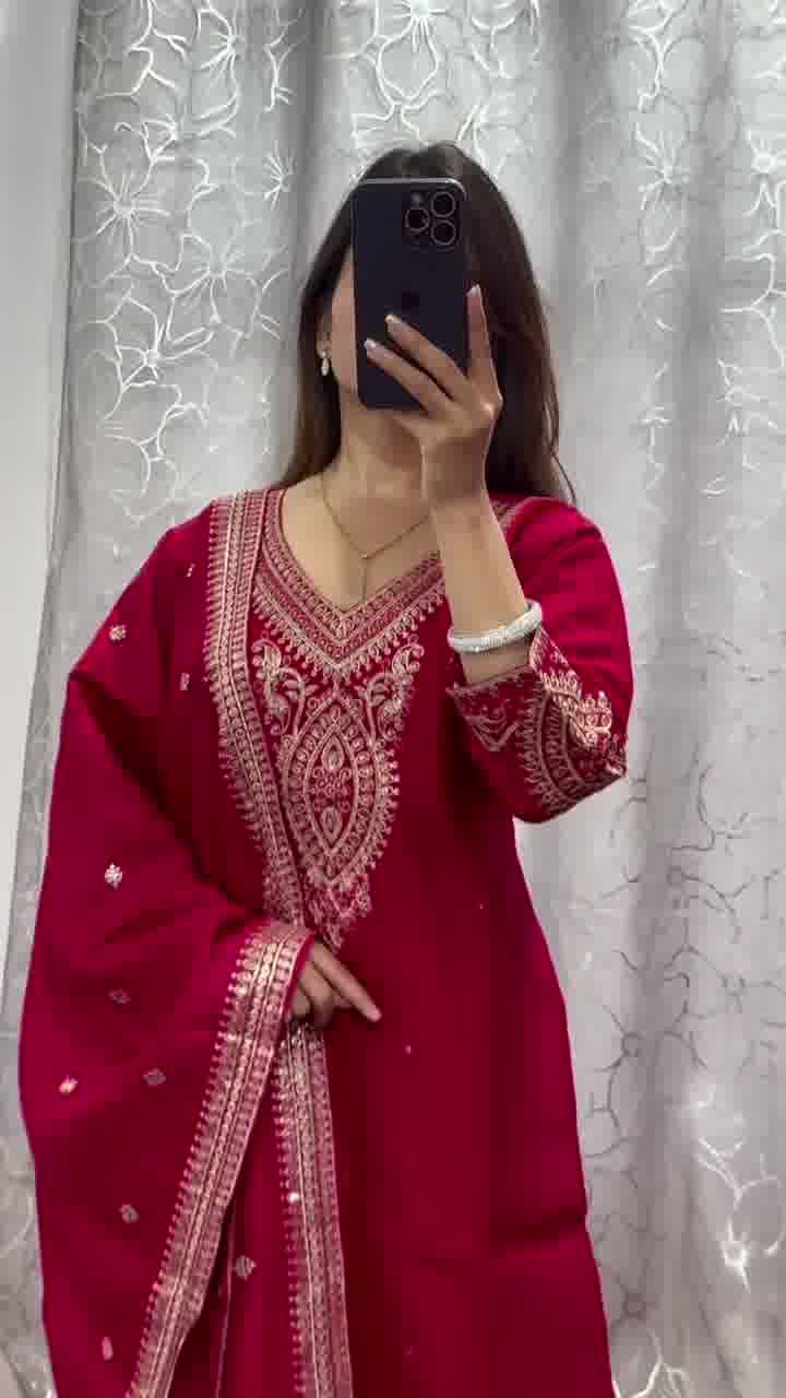 Red Chinon Sequence Coding Dori Work Salwar Suit