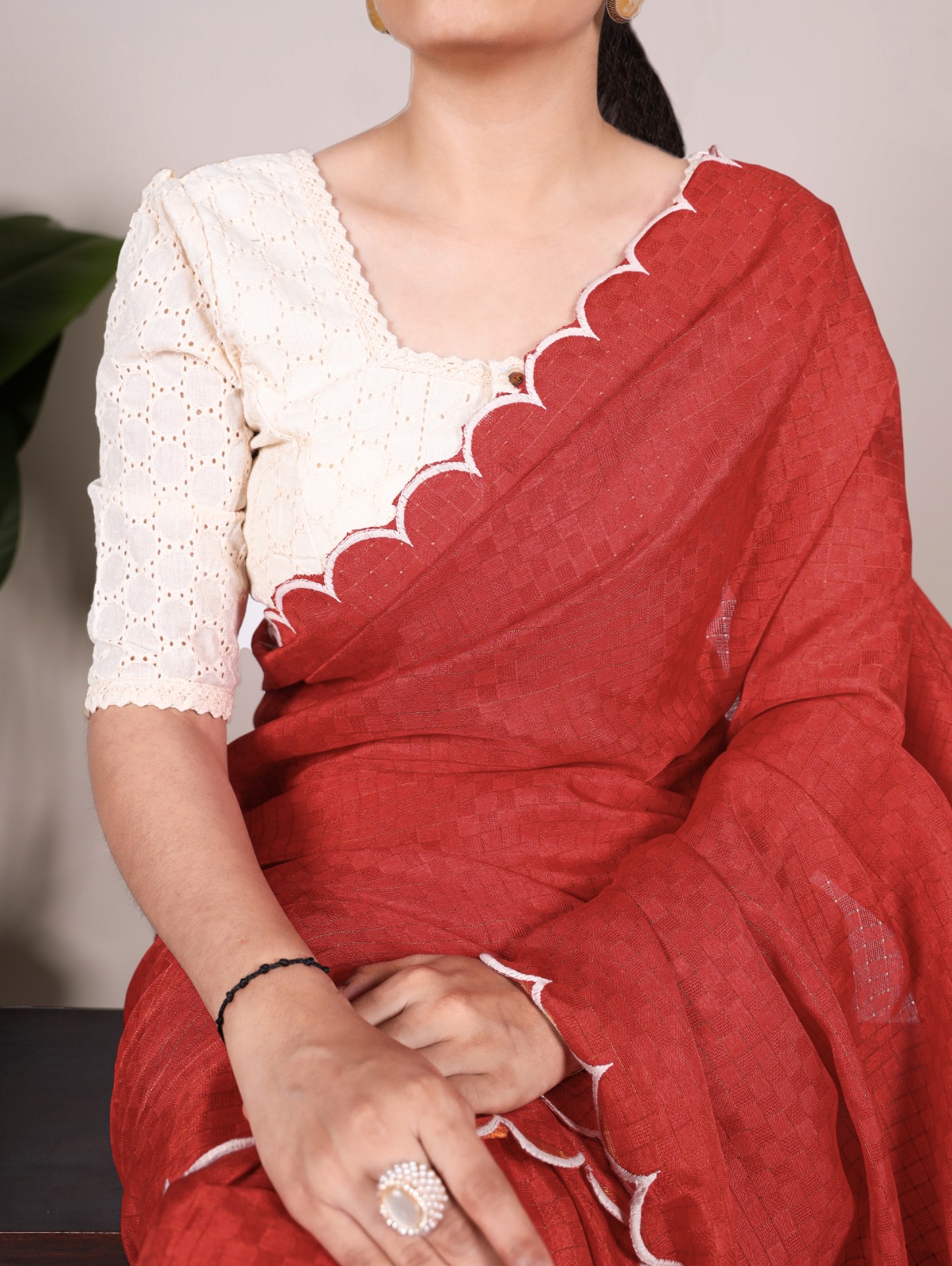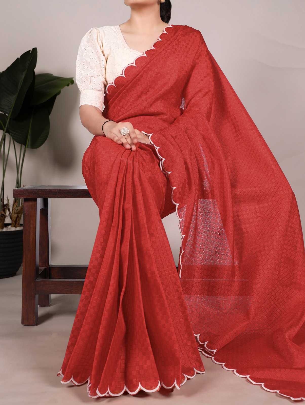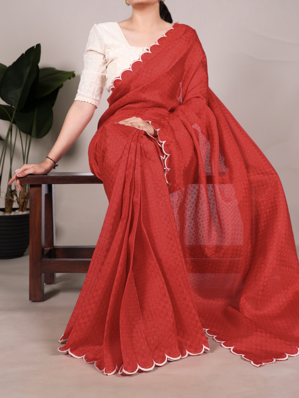 YNF 7105 Red Color Gadhawal Chex Arca Work Saree Casual, Wedding, Festive, Events . Expected Delivery  4-6 Working Days @1599/- only                                                                                | Sarees, Bollywood Sarees, Creative Sarees, Designer Sarees, Embroidered Sarees, Ethnic Saree, Modern Digital sarees, Party Wear Sarees