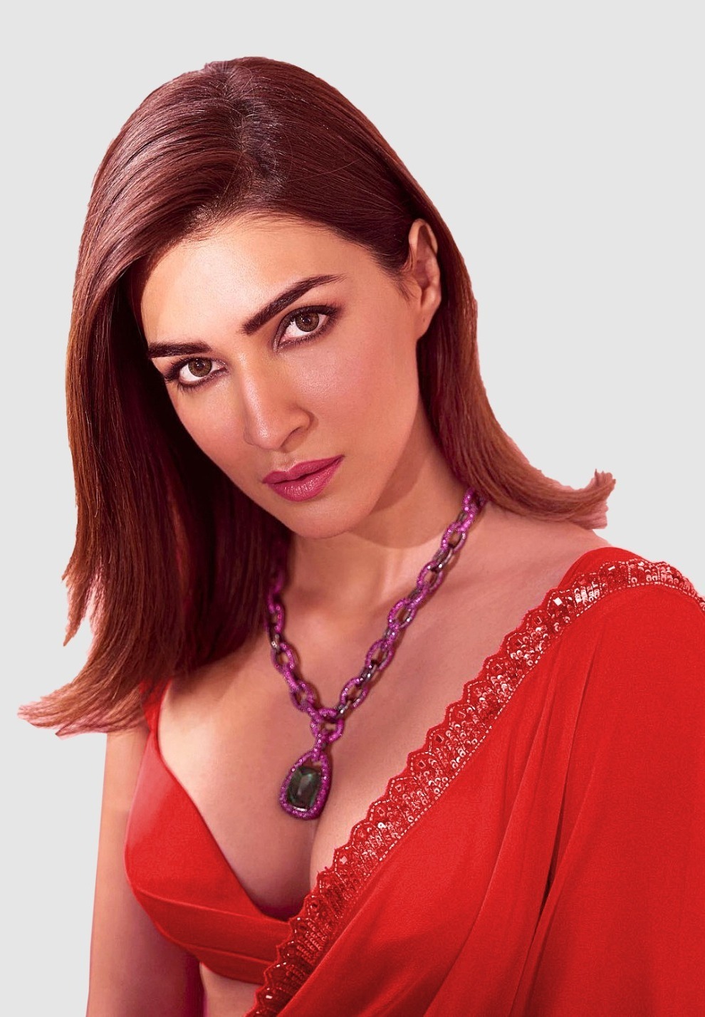 Red Georgette Embroidery Dual Sequence Saree
