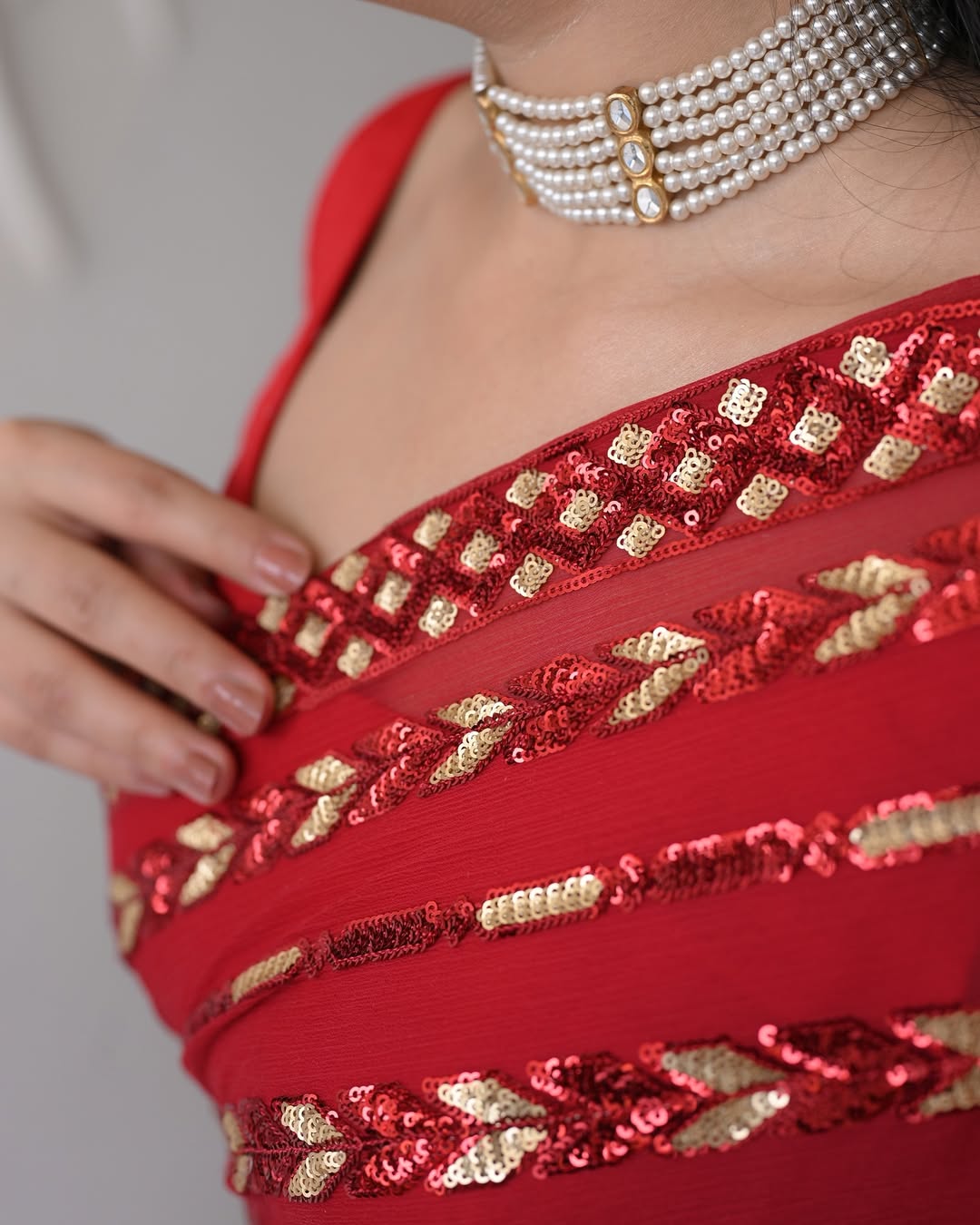Saree Work- Embroidery Dual Sequence Work & Lace With Piping