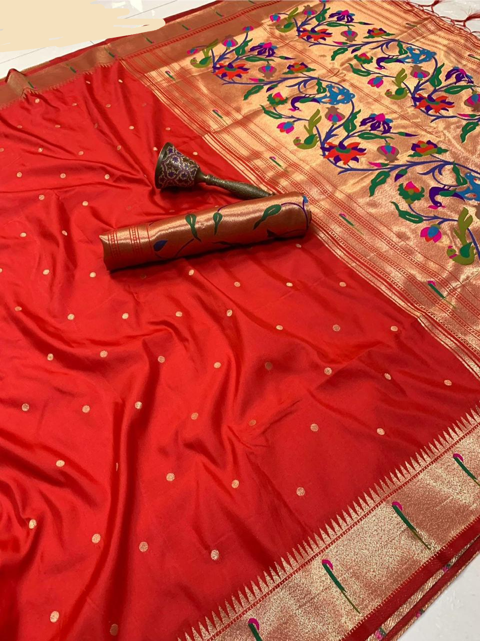 Stunning for Ganesh Chaturthi. The traditional weave is beautiful. Weighs a solid 1.5kg. Service was prompt and professional.