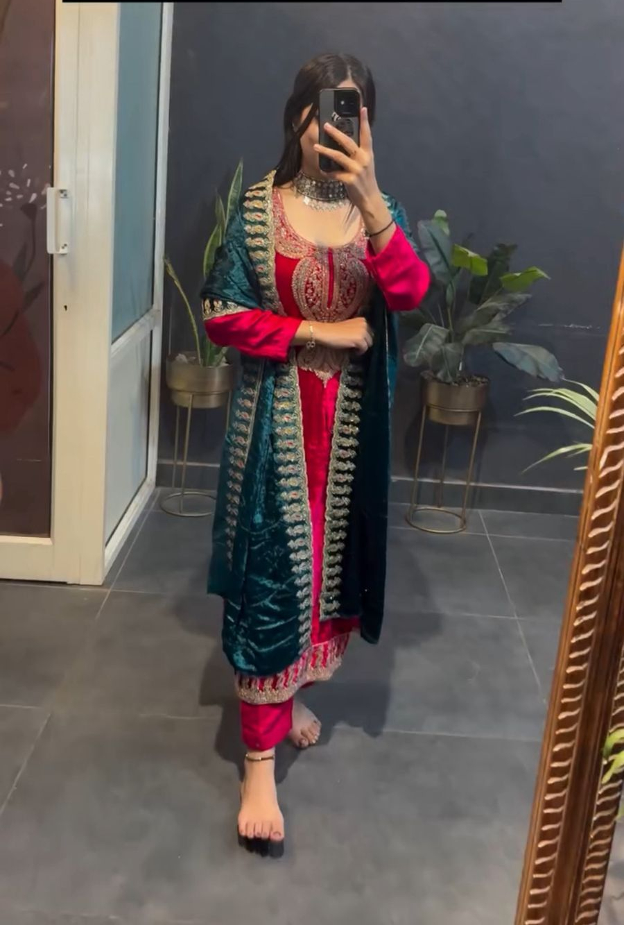 Dupatta Fabrics : heavy Viscose Velvet With heavy Embroidery Work And Border Cutting Work