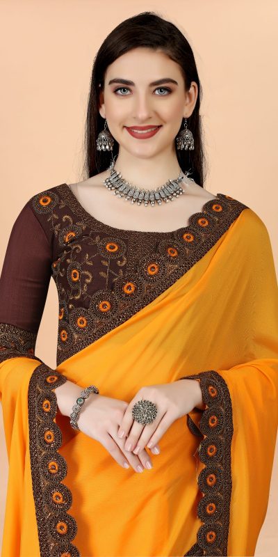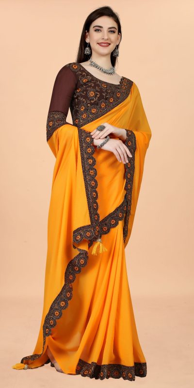DDH MINAKARI Orange Color Vichitra Design Work lace Work Saree Events Casual, Wedding, Festive, Events Etc. Expected Delivery 4-6 Working Days @1749/-