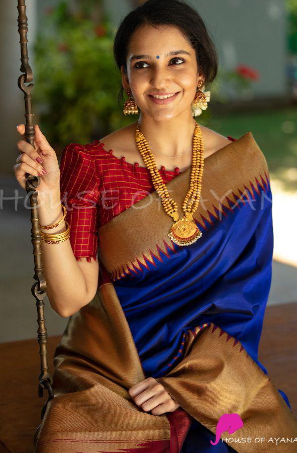 Royal Blue Soft Lichi Silk Jacquard Work Saree