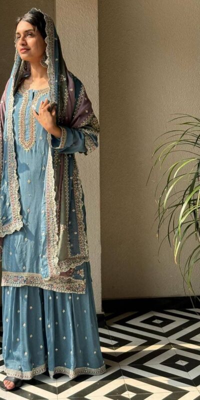 Fabrics Detail Top Fabrics : Heavy Fuax Georgette Top Size : Full Stitched Free Size Top Length : 42 Inched Top Inner : Micro Cotton Top Length : 46 Inches Work : Heavy Embroidery Sequins Work Sleeves : Embroidered Work Palazzo Fabrics : Fuax Georgette Palazzo Length : 40 Inched Palazzo Size : Full Stitched ( Free Size ) Palazzo Work : Embroidered Sequins Work Dupatta : Fuax Georgette Dupatta Work : Embroidered Sequins Work Dupatta Size : 2.10-2.20 Mtr |