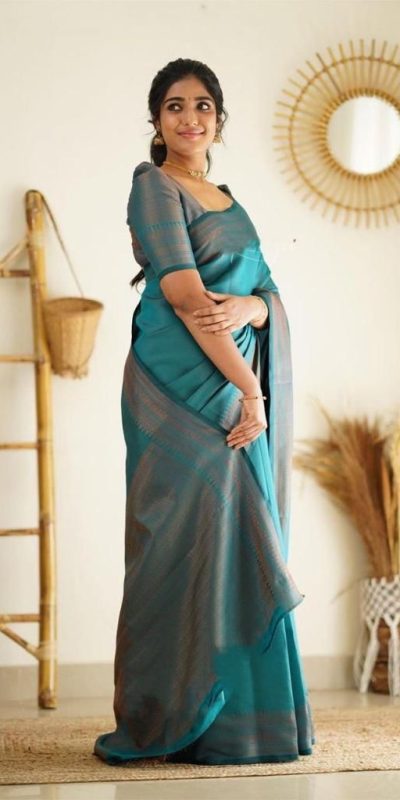 Slightly Peacock Blue Soft Lichi Silk Rich Pallu All Over Saree