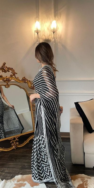 JR 601A Black & White Color Georgette Embroidery Sequence lace with piping Work Saree Casual, Wedding, Festive, Events Etc. Expected Delivery 4-6 Working Days @1749/-
