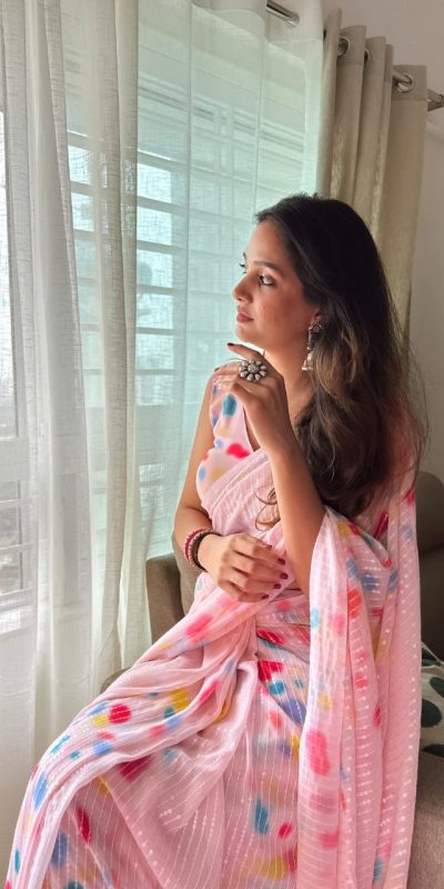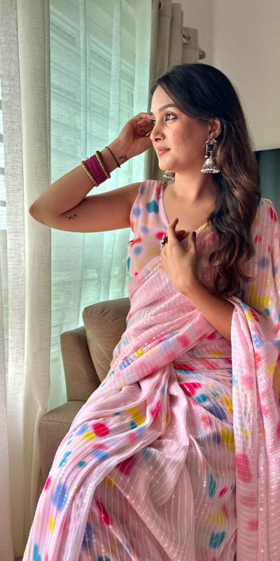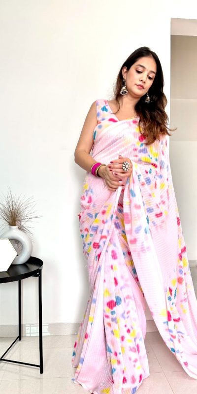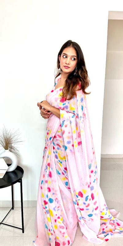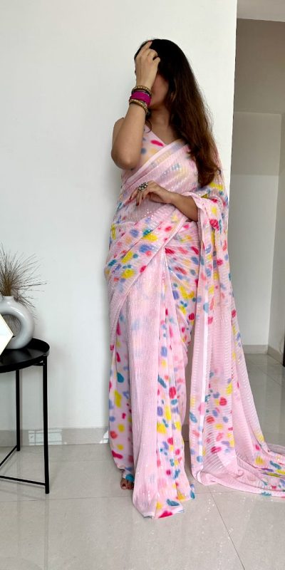 Special Light Pink Color faux Georgette Digital Printed Allover Saree