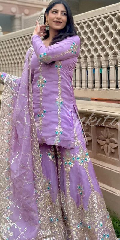 Fabrics Top:- Heavy Foix Georgette With Heavy Embroidery 5 Mm Sequence Work Inner :micro Cotton Length :37-inch                                                                                                                                                                            SARARA : Heavy Foix Georgette And 5 Mm Embroidery Work With Micro Cotton And Elastic Length:40-inc                                                                                                                                                                                Dupatta : Heavy Foix Georgette With Embroidery Work Length: 2.2mtr