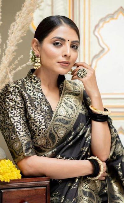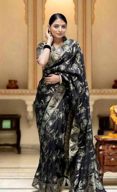 Splendorous Black Color Soft Lichi Silk Jacquard On All Over Saree