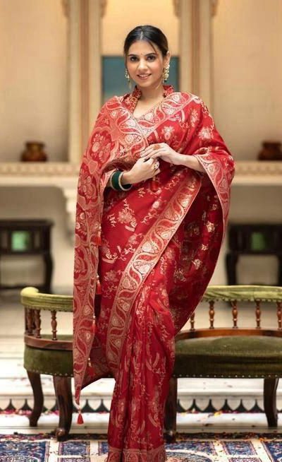 Splendorous Red Color Soft Lichi Silk Jacquard On All Over Saree