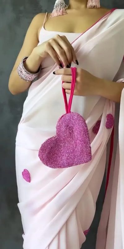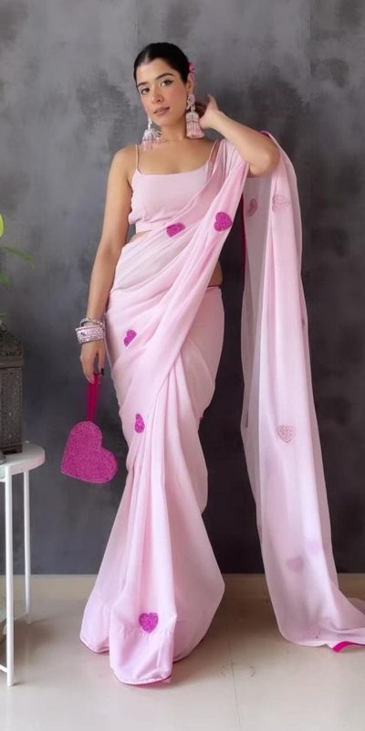 Stunning Light Pink Color Soft Georgette Silk With Embroidery Heart Design Saree