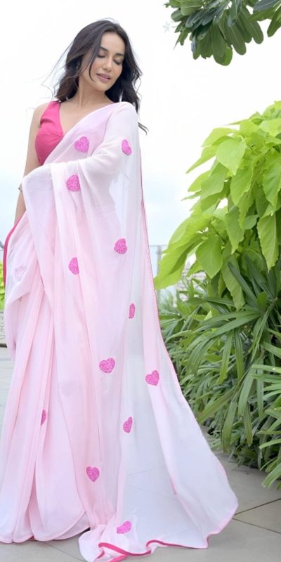SC 213 Light Pink color Soft Georgette Silk With Embroidery Heart Design Saree Casual, Wedding, Festive, Events . Expected Delivery 4-6 Working Days @1549/- only