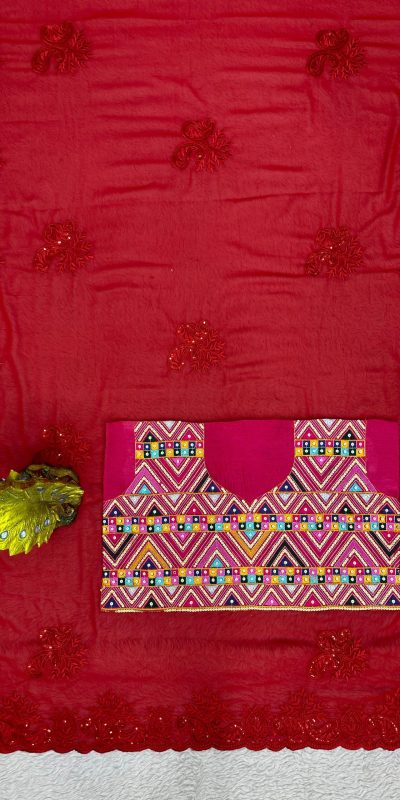 KD 443 Red Color Faux Georgette Thread With Sequence Saree Casual, Party, Wedding, Festive, Events Etc. Expected Delivery 4-6 Working Days @1799/- Only