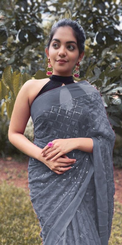 KT 201 Cement Color Georgette Fancy Sequence Work Saree Casual, Party Wear, Wedding   Expected Delivery 4-6 Working Days@1649/-