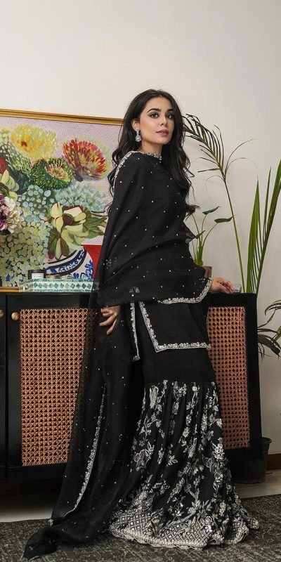 Sublime Black Color Georgette Thread Sequence Salwar Suit