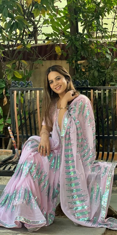 Work : Sequence work with Lace border with metti piping Blouse : Mono Banglory |