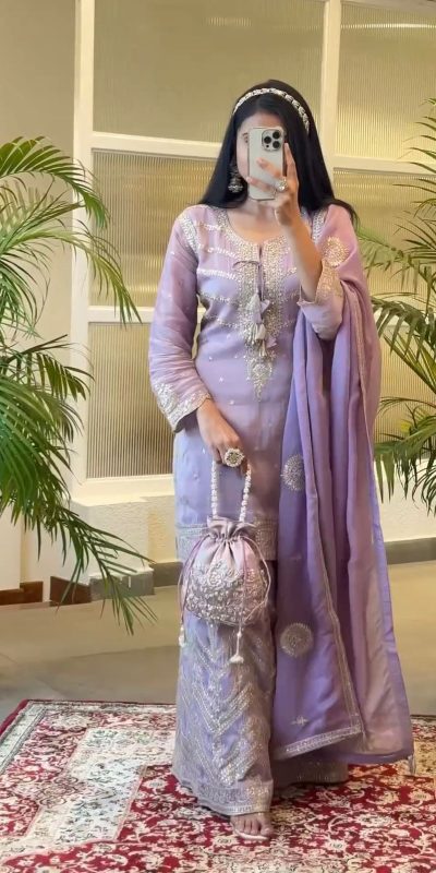 SSR 476 Purple Color Chinnon Silk Malty Thread Embroidery Salwar Suit Wedding, Party, Festive, Events Expected Delivery 4-6 Working Days @ 2399/-