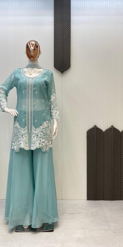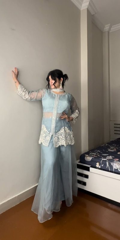 | Fabrics | Blouse : Soft Organza Inner : Micro Height : 14 inch Free Size Semi StitchedTop fabric : Soft Organza With Sequence Embroidery Work Size : Free Size Semi Stitched Height : 33 inchCircular Palazzo Fabric : Soft Organza Inner : Micro Size : Free Size Semi Stitched Height : 42 inch Dupatta : Soft Organza With Sequence Embroidery (Pleated Ready Dupatta) |