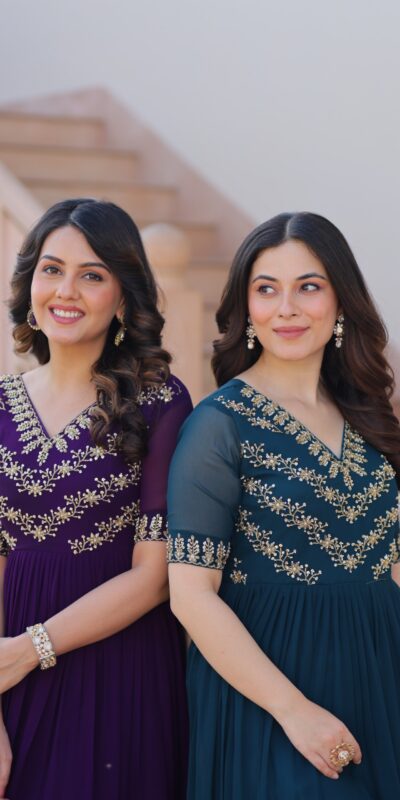 GownΒ Β :-Β Fabric & Work :- Faux Blooming With Sequins Multi threaded Beads Embroidered Work. Size :- Free Size Semi Stitched Length :- 56 Inch Flair :- 7 MtrΒ Lining :- CottonΒ (Full Inner Top To Bottom) Sleeves :- Half Sleeves Stitching Type:- Frill Stitch Neck Type :- Fancy V Neck |