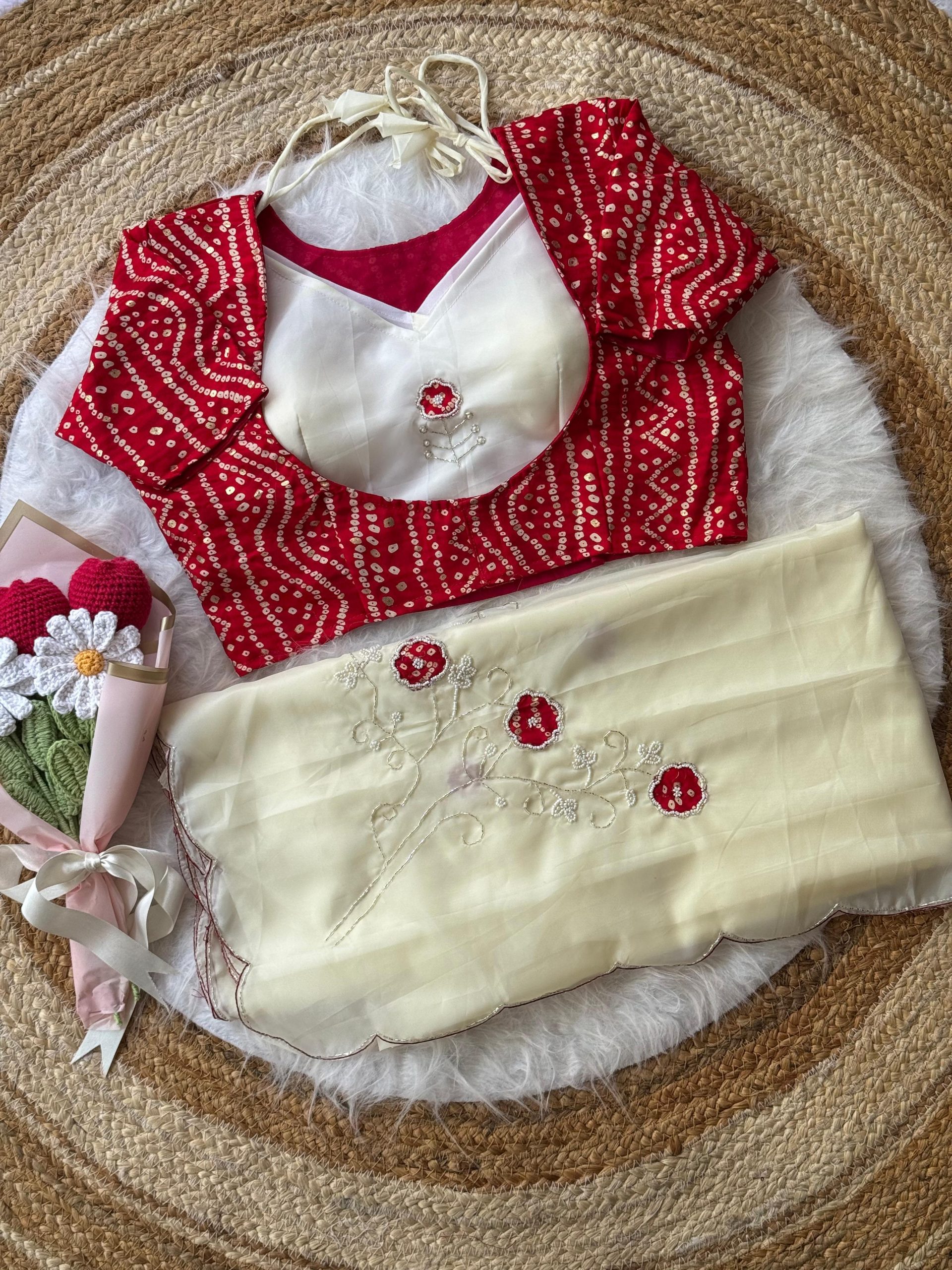 Saree Work : Hand Work Of Cut dana, Moti And Butta